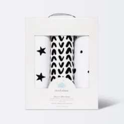 Muslin Swaddle Blanket – Cloud Island™ – Black/White – 3pk