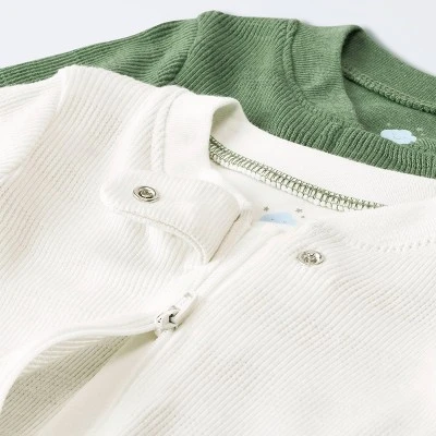 Your baby will be oh-so-cuddly and toasty warm in the 2-Pack Waffle Sleep N’ Play from cloud island™. This pack of two waffle sleep n’ plays includes one in green and another in cream for an adorably sweet look. Made from cotton-blend fabric for soft comfort, these long-sleeve sleep ‘n plays come with a built-in footed design to provide full coverage, and the convenient full-length inverted zipper allows for easy dressing and diaper changing. Plus, the safety tab over the top of the zipper protects their chin from scratches.