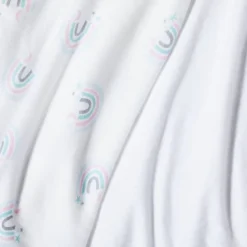 This 2-Pack of Fitted Jersey Crib Sheets Love to Dream from cloud island™ includes two fitted crib sheets to fit standard cribs and toddler beds. Made from 100% jersey cotton, these standard crib sheets fit nine-inch mattresses, and they’re designed with all-around elastic for a secure fit over the crib mattress. The pack includes two fitted crib sheets — one in crisp white and the other with an allover print of tiny rainbows with crescent moons and stars in soft colors on a white background — to give your little one’s nursery decor a whimsical update.
