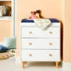 This 2-Pack of Fitted Jersey Crib Sheets from cloud island™ includes two fitted crib sheets to fit standard cribs and toddler beds. Made from jersey cotton with spandex, these sheets fit six-inch mattresses, and they’re designed with all-around elastic for a secure fit. The pack includes two fitted crib sheets — one in stylish solid blue and the other with allover light blue arrow print on a dark blue background — to give your little one’s nursery decor a cute refresh.